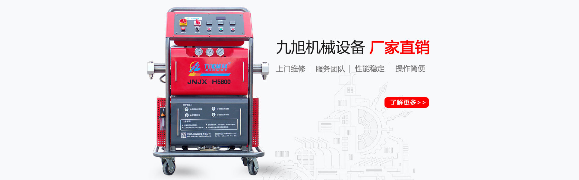 山東九旭機械科技有限公司歷經(jīng)十幾年的發(fā)展,已成長為聚氨酯設備行業(yè)頗具實力的設備制造廠家之一。企業(yè)主要產(chǎn)品:聚氨酯噴涂機、聚氨酯發(fā)泡機、聚氨酯澆注機、聚脲噴涂機等,關(guān)于設備配件(聚氨酯高壓噴槍、槍嘴、加熱管道、料塊、摩擦副、增壓泵、混合式、提料泵等)也是堅持最好的質(zhì)量服務用戶,并承接:外墻保溫、冷庫保溫發(fā)泡等工程...